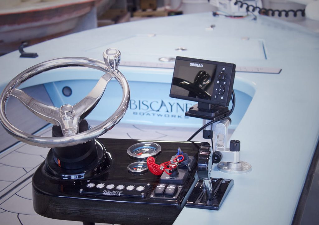 A combination of old school and new school skiff technology the Biscayne Boatworks 170 brings a new perspective to the technical poling skiff. The hull features a large spray rail to create the driest ride of any skiff in its size range as well as a rounded stern that produces minimal turbulence and allows for silent turns when stalking fish. any skiff in its size range as well as a rounded stern that produces minimal turbulence and allows for silent turns when stalking fish.